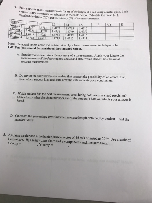 Must see Solved Four students make measurements (in m) of length of a | Chegg.com Latest