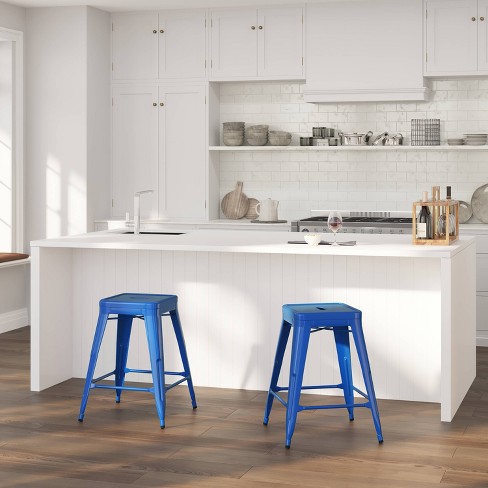 Images Backless Metal Counter Height Barstool With Square Seat Blue - Merrick going viral