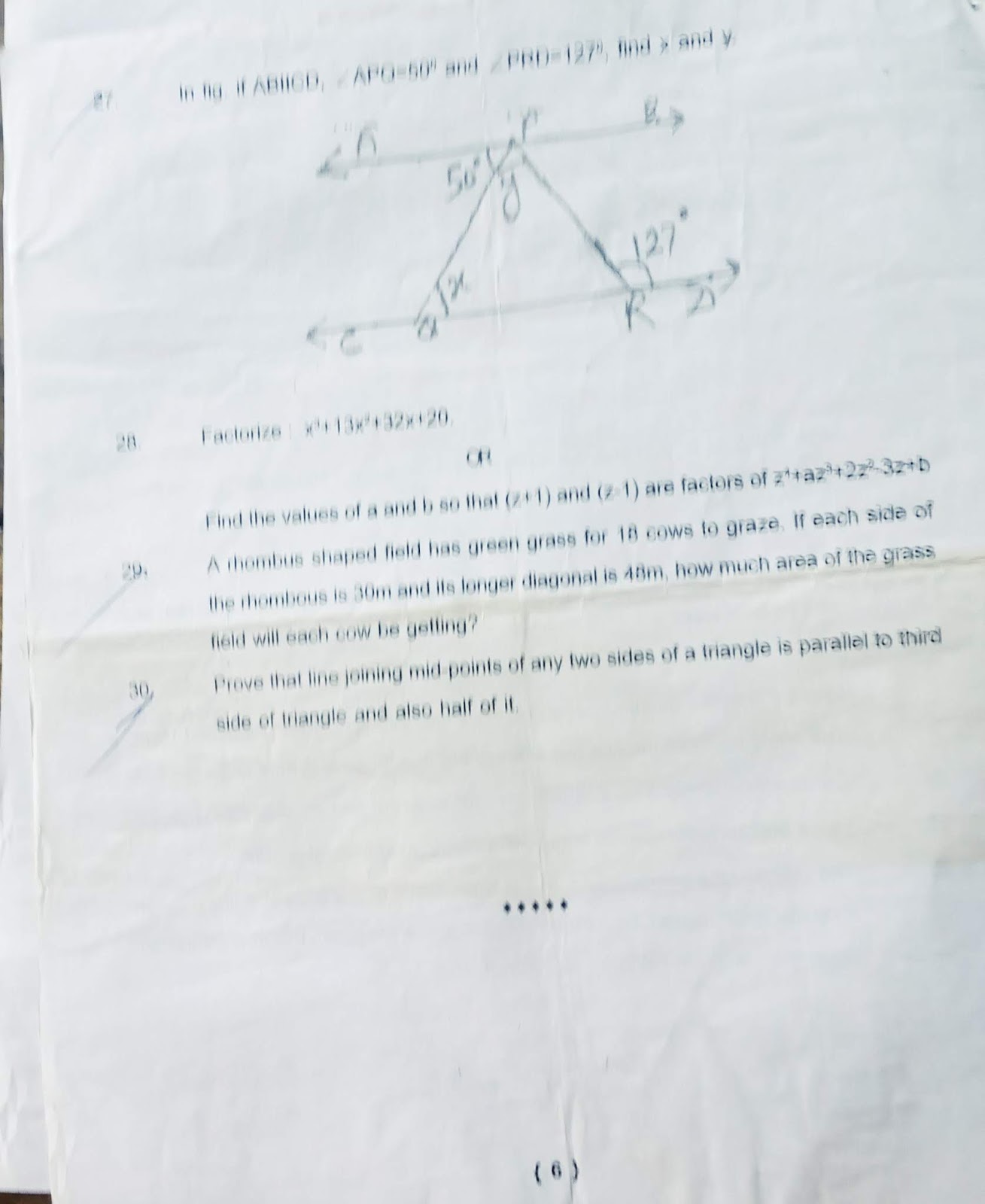 A latest question paper of class 9 maths half yearly with solution is given here. Each question is explained.