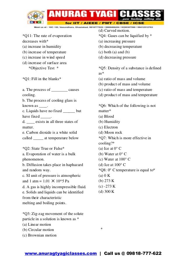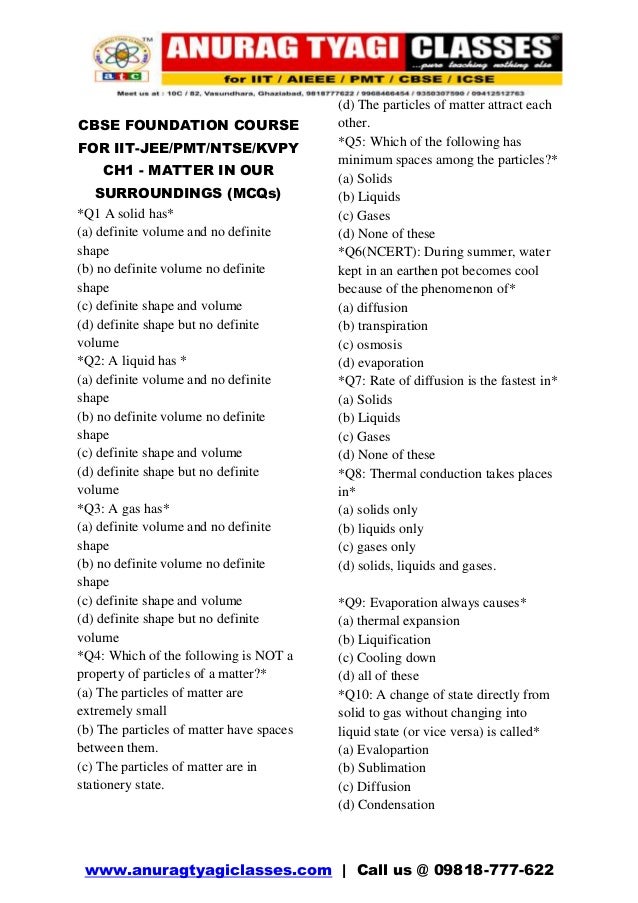 Matter in our surroundings MCQ FOR CLASS IX IITJEE FOUNDATION BY ANU… New