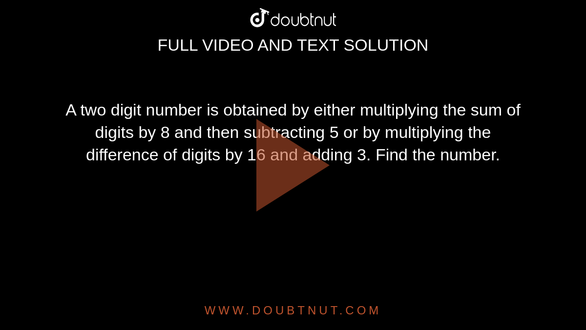 A Two Digit Number Is Obtained By Either Multiplying, 9. A two–digit number is obtained by either multiplying the sum of the digits by 8 and then subtract, 6.87 MB, 05:00, 1,919, Kwatra Tuition Center, 2020-06-07T17:45:55.000000Z, 19, Two digit number is obtained by either multiplying the sum of the, www.youtube.com, 1280 x 720, jpeg, digit obtained multiplying, 20, a-two-digit-number-is-obtained-by-either-multiplying, KAMPION
