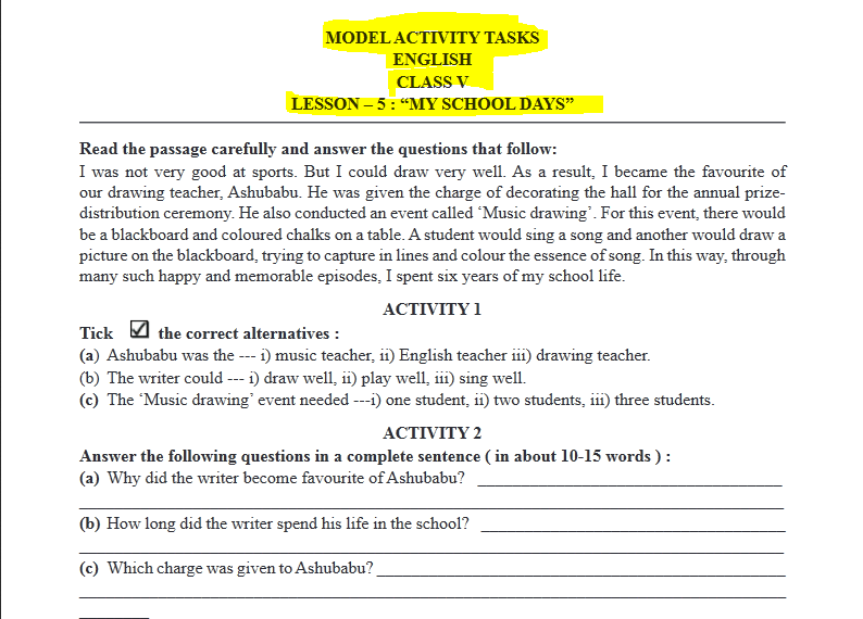 Model activity task class 5 english part 4 | Class 5 english part 4 | Model activity task class v