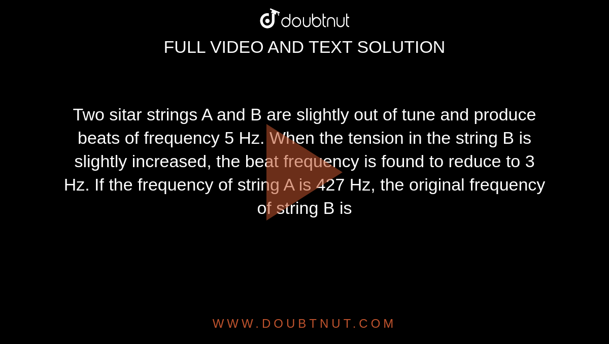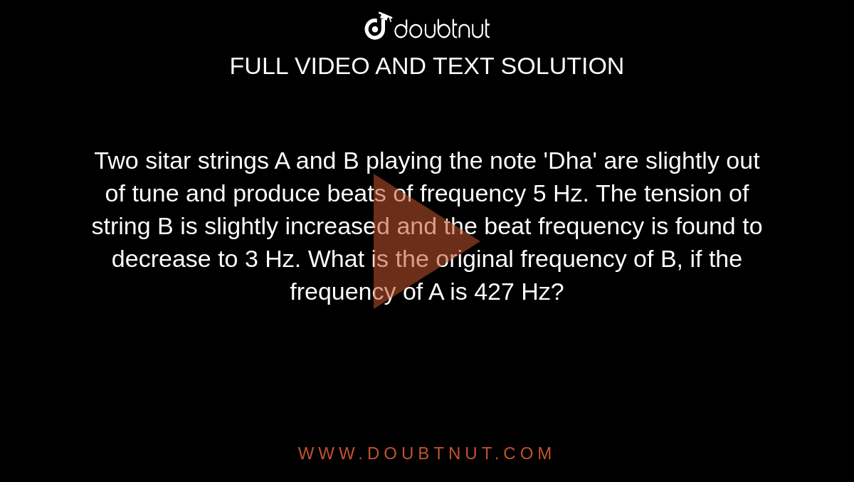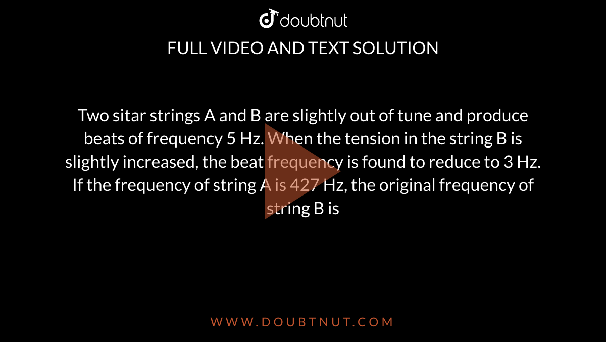 Two Sitar Strings A And B Playing The Note Dha, Two sitar strings A and B playing the note \'Dha\' are slightly out of tune and produce beats of..., 4.69 MB, 03:25, 1,293, Doubtnut, 2019-09-24T09:08:59.000000Z, 19, Two sitar strings A and B playing the note 'Dha' are slightly out of, www.doubtnut.com, 1200 x 677, png, , 20, two-sitar-strings-a-and-b-playing-the-note-dha, KAMPION